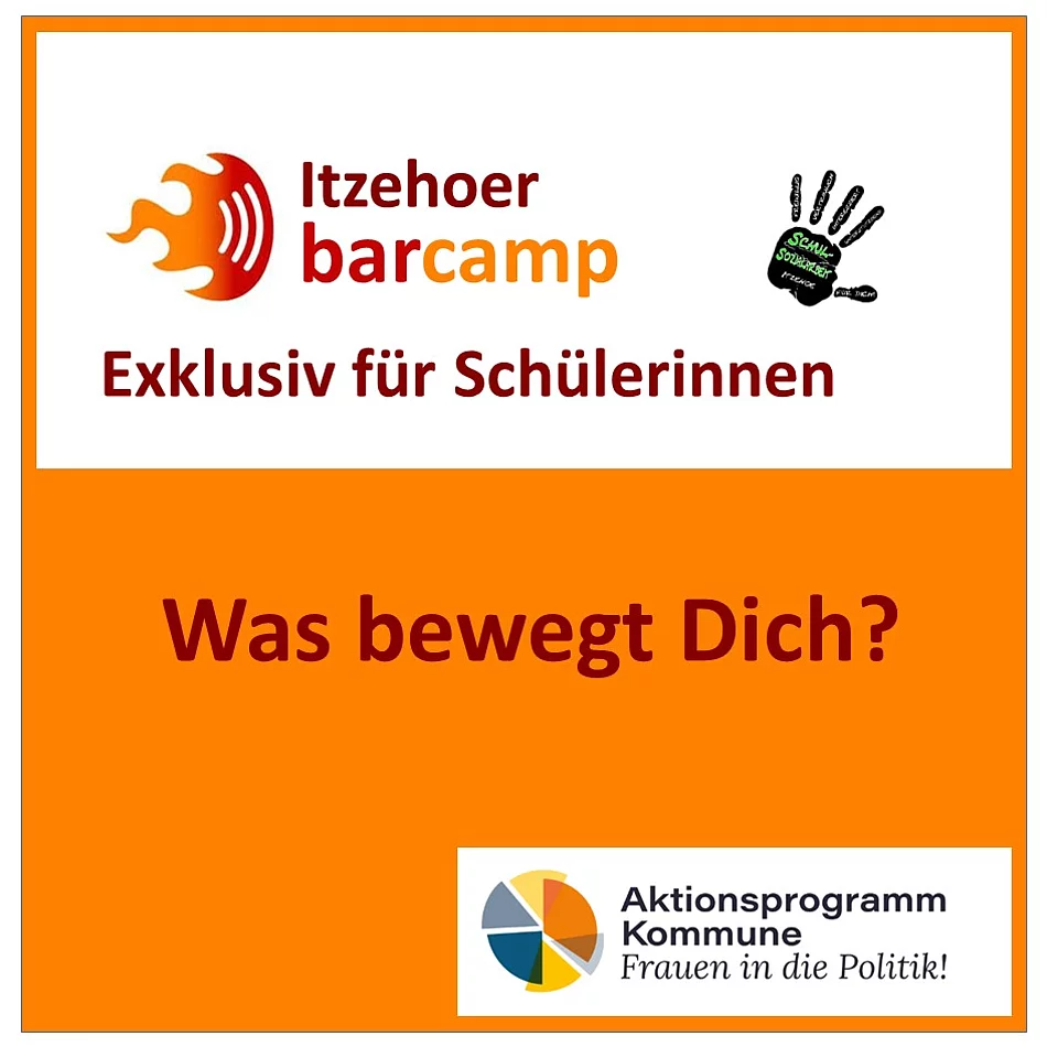 „Ein Barcamp bietet insbesondere einen Rahmen, sich z.B. über Wünsche, Ziele, Sorgen und Ängste auszutauschen und schafft Vernetzungsmöglichkeiten über den Rand der Schulen hinaus. Wir wollen zu dem 1. Barcamp Mädchen, junge Frauen und weiblich identifizierte Kinder und Jugendliche einladen, sich in diesem Rahmen auszuprobieren, denn diese Personengruppe ist in Kinder- und Jugendgremien noch immer stark unterrepräsentiert.“ sagt Britta Dichte, Gleichstellungsbeauftragte des Amtes Itzehoe Land und Mitorganisatorin des Barcamps, „Hierfür haben wir spannende Expert*innen eingeladen, die den Teilnehmenden auf Wunsch beratend zur Verfügung stehen.“ Mit dabei sind unter anderem Ralf Hoppe, der Bürgermeister der Stadt Itzehoe, Sandra Ludwigh, die Klimaschutzbeauftragte des Kreises Steinburgs oder Anja Oehmicke aus der Schulpsychologischen Beratungsstelle, Natalie Nobitz, die Gleichstellungsbeauftragte des Kreises Steinburg und Karin Lewandowski, die Gleichstellungsbeauftragte der Stadt Itzehoe.