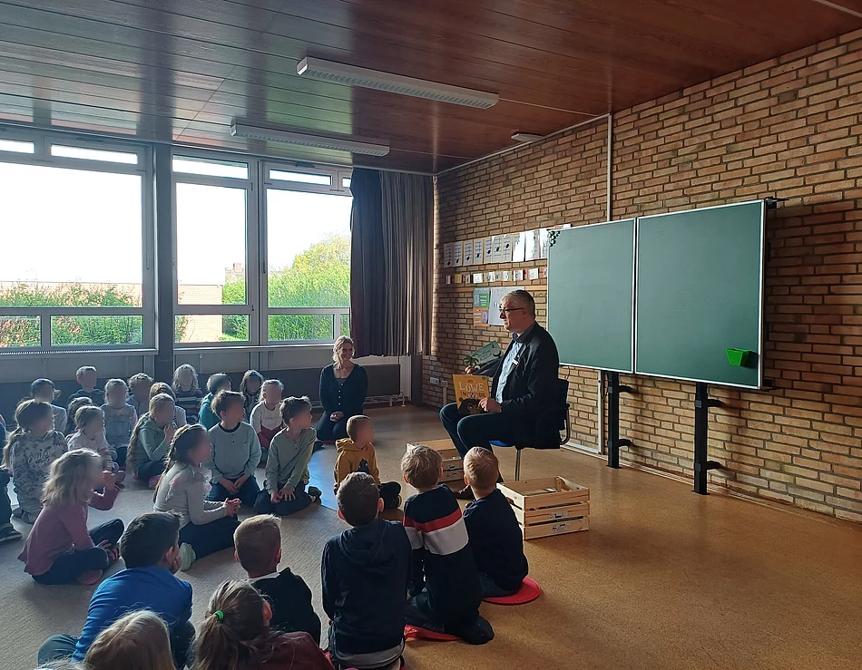Zum Auftakt des Welttags des Buches besuchte Herr Mathias Siebenborn, der Amtsdirektor des Amtes Itzehoe-Land als Lesepate die Schule und las allen Erstklässlern und Erstklässlerinnen aus dem Buch „Der Löwe in Dir“ vor. Die Kinder hörten gebannt zu.