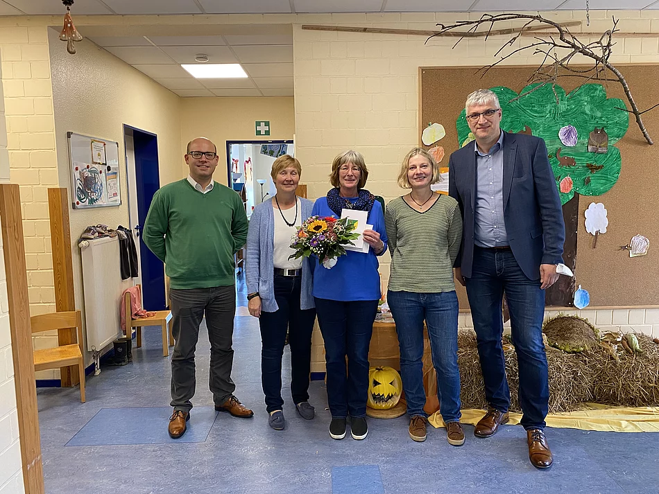 15 Jahre im Dienste für den Kindergarten "Löwenzahn" in Kleve. Diese langjährige Zeit der Kindergartenleiterin Frau Gisela Stäcker-Ehlers wurde im Rahmen einer Verabschiedung am 29.09.2021 im Kindergarten Löwenzahn gewürdigt. Renate Lüschow, Amtsvorsteherin des Amtes Itzehoe-Land, verabschiedete zusammen mit dem Ltd. Verwaltungsbeamten Herrn Siebenborn sowie Hauptamtsleiter Herrn Reese und Frau Pohlmann vom Hauptamt der Amtsverwaltung Itzehoe-Land die Kindergartenleiterin Frau Gisela Stäcker-Ehlers in den Ruhestand.