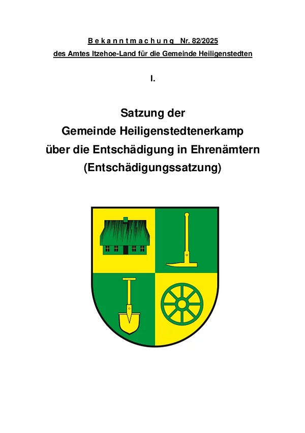 Bekanntmachung Nr. 82/2025 des Amtes Itzehoe-Land für die Gemeinde Heiligenstedtenerkamp - Entschädigungssatzung